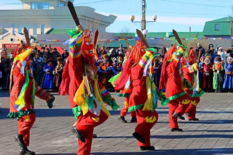 Праздник продолжился традиционным поздравлением губернатора Забайкальского края Александра Осипова на бурятском языке. А после под звуки народной музыки люди соединились в круг для главного танца Сагаалгана — гранд-ёхора. В этот момент различия стираются: в танце объединились и простые жители, и первые лица региона. Как говорится, "танцуют все!"