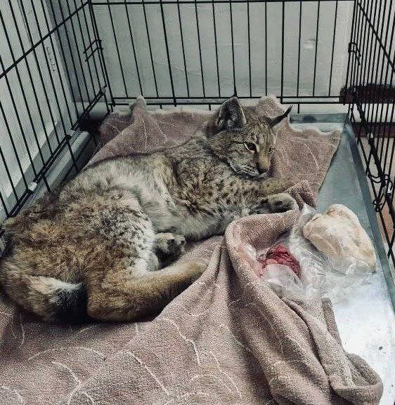 Специалисты проверили рысь на наличие болезней, убедились, что она здорова, и после кормления вернули её в её естественную среду обитания.