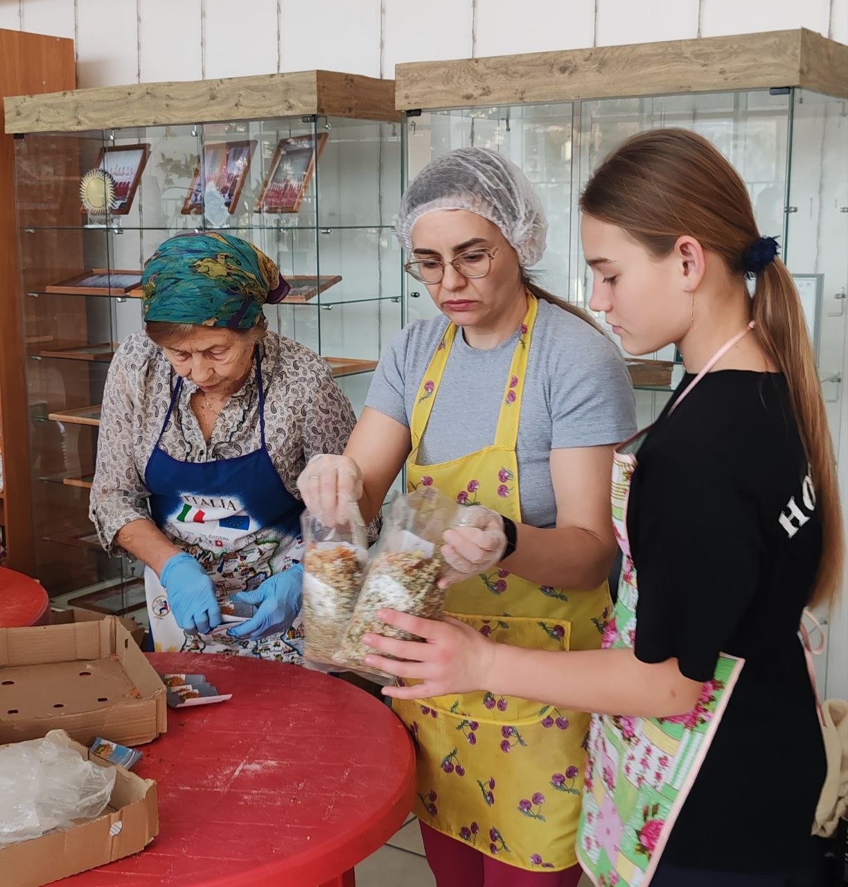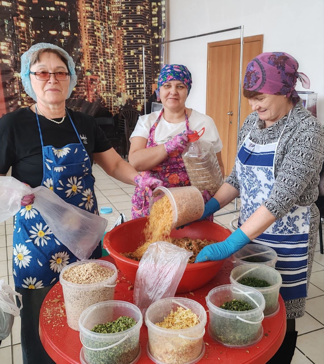 С начала работы фронтовой кухни выпущено 126 тысяч порций сухих супов и 11 тысяч реторт-пакетов. В помощи участвуют женщины, девушки и дети — они фасуют, сушат и готовят продукты. Жители района привозят ингредиенты, благодаря чему производство не останавливается ни на один день.