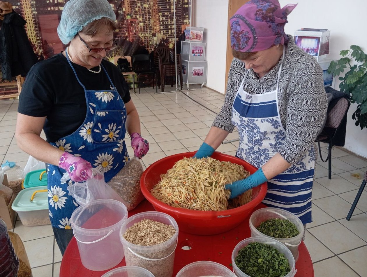 ChitaMedia, 3 декабря. Жители села Красный Чикой Красночикойского района приготовили ещё 6,2 тысяч порций сублимированных блюд для российских военных, находящихся на СВО. Об этом сообщил глава района Евгений Гостев в своём телеграм-канале (18+).