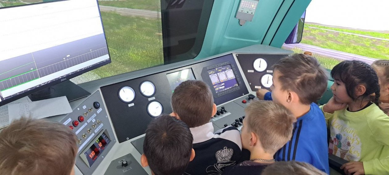 А в учебном центре магистрали состоялась экскурсия, во время которой ребята оценили обстановку в зоне движения поездов из кабины-тренажера локомотива.