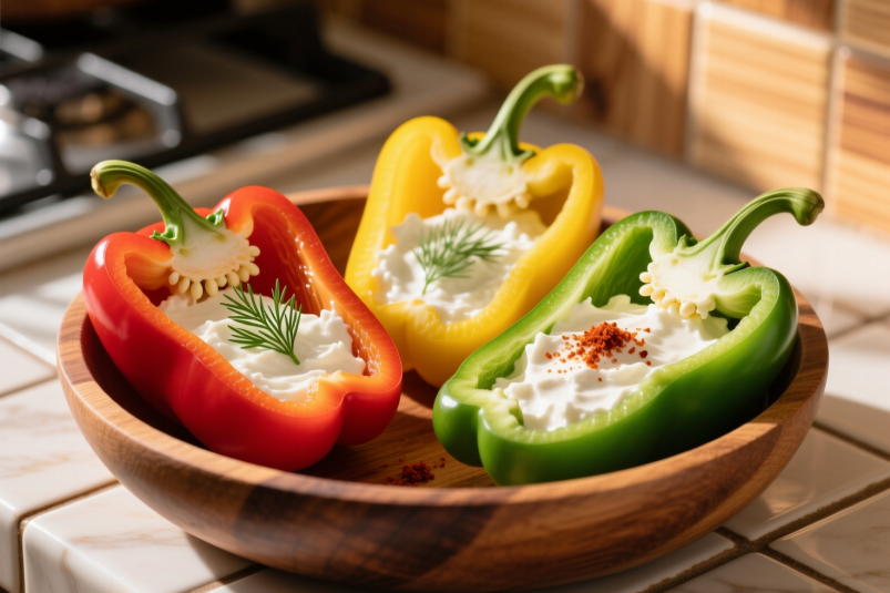 После праздников хочется легкости, но не скучной еды. Эти лодочки из запеченного болгарского перца с нежным творожным сыром и зеленью — идеальный баланс: сочные, свежие, с насыщенным цветом и уютным вкусом. Готовятся за 12 минут, а выглядят как блюдо из глянцевого журнала.