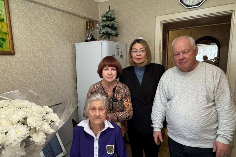 В день юбилея именинница встретила гостей из администрации Черновского района нарядной и в хорошем настроении. Представила детей, рассказала о четырёх внуках и правнуке.