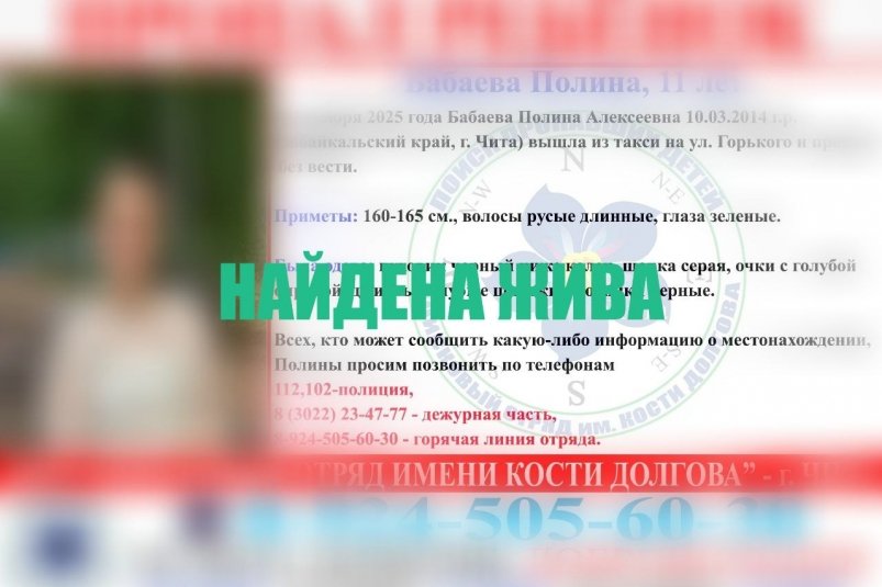 ChitaMedia, 19 декабря. Одиннадцатилетняя девочка пропала в Чите после того, как вышла из такси на улице Горького 19 декабря. Об этом сообщается в тг-канале (18+)поискового отряда имени Кости Долгова.