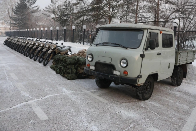 ChitaMedia, 27 декабря. В канун Нового года в штабе 29-й гвардейской армии в Чите состоялась передача крупной партии военно-технической помощи для участников СВО. Колонну, сформированную предприятием "Прииск Усть-Кара", составляют УАЗ, 20 подготовленных мотоциклов для штурмовиков, десятки квадрокоптеров, тепловизоры и около 200 индивидуальных наборов первой необходимости. Об этом сообщается в телеграм-канале (18+) правительства Забайкалья.