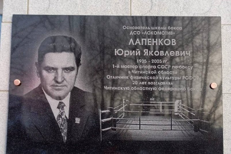 "Сегодня в спортивном комплексе "Локомотив" прошло торжественное открытие памятной доски первому мастеру спорта СССР в Читинской области, отличнику физической культуры РСФСР. Тренеру, который воспитал более 12 мастеров спорта Юрию Яковлевичу Лапенкову", — говорится в публикации.