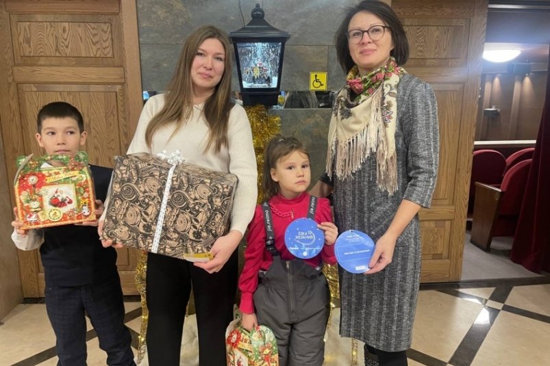 Подарок чиновница передала сестре мальчика, которая привезла своих детей в Читу на Губернаторскую ёлку (0+).