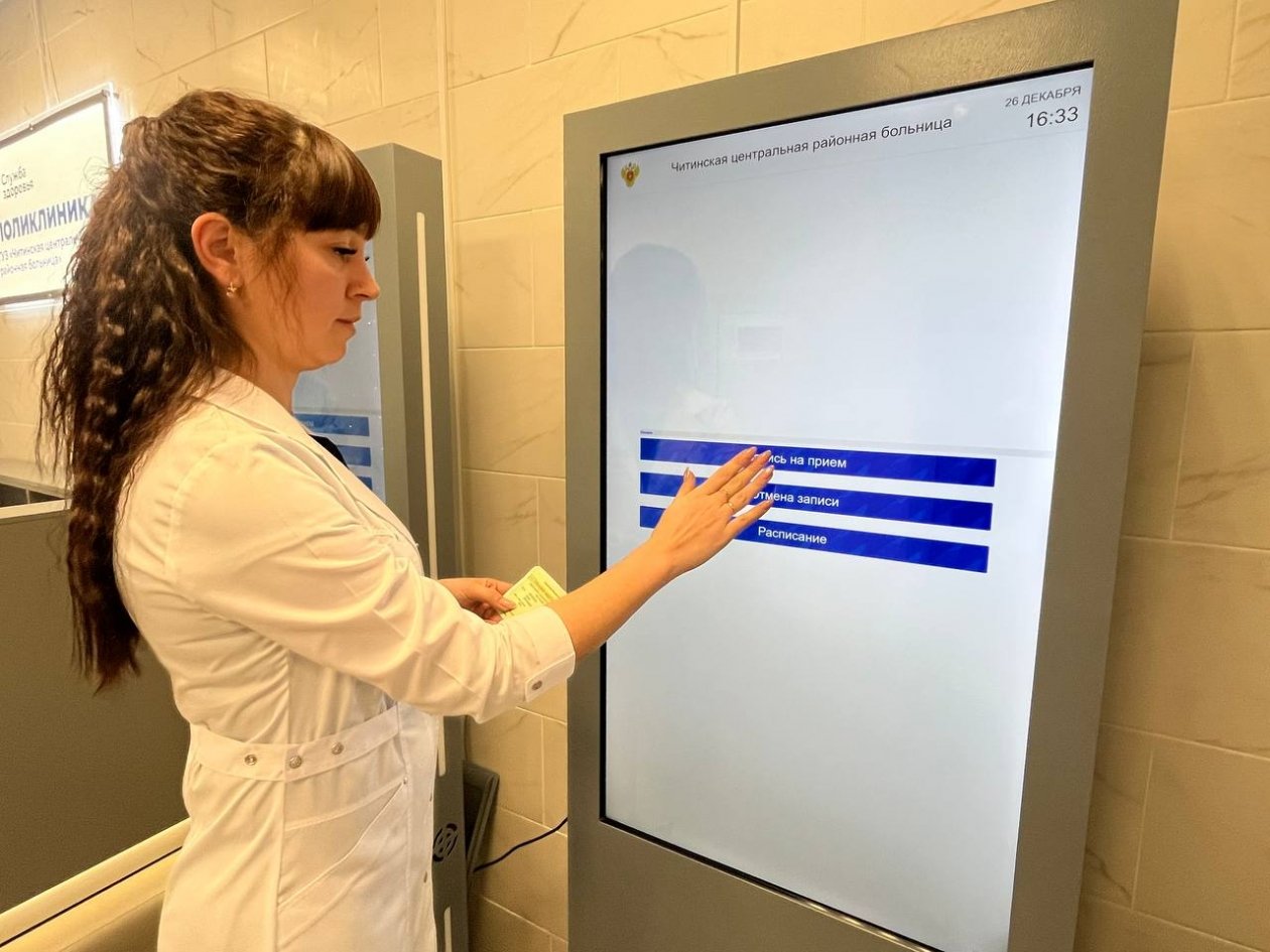 Новый Год с обновлённым ремонтом встретит и поликлиника Читинского округа. Здесь вместо привычной регистратуры установили информационные терминалы с сенсорным экраном — именно через него пациенты смогут записаться на приём.
