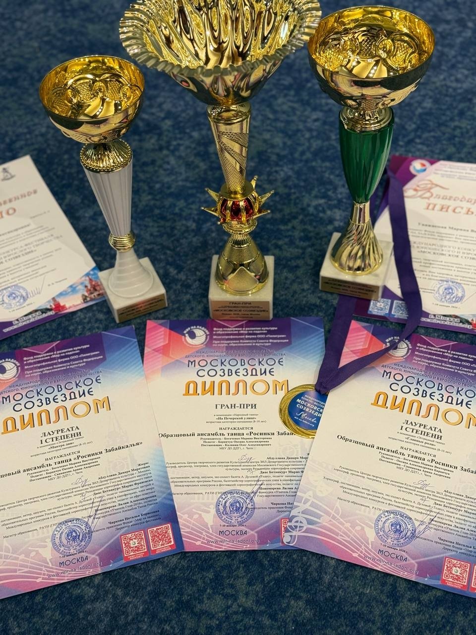 ChitaMedia, 15 января. Ансамбль "Росинки Забайкалья" из Читы стал победителем Международного конкурса молодых талантов "Московское созвездие" (0+). Коллектив выиграл гран-при и стал лауреатом первой степени в двух номинациях. Об этом сообщил пресс-секретарь комитета образования Читы Гэсэр Раднаев.