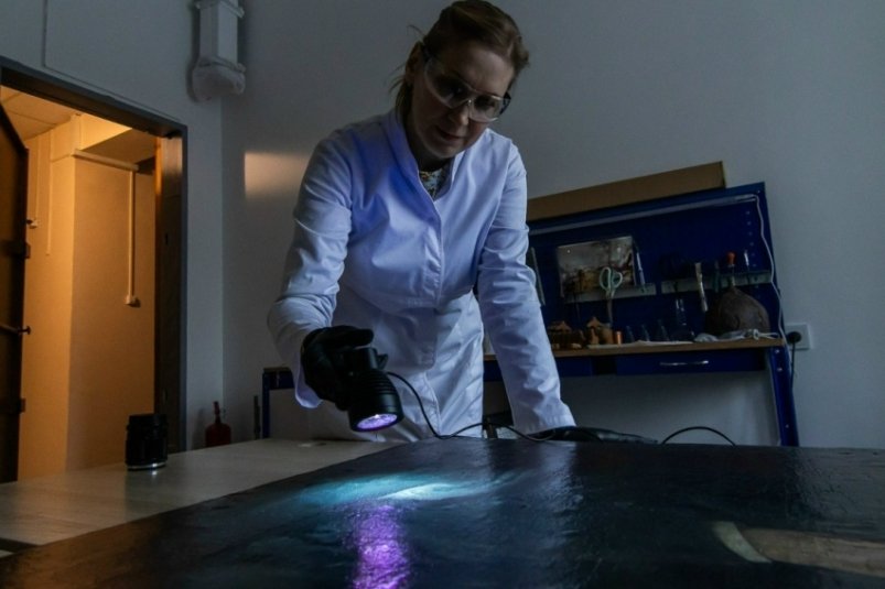 Ирина отметила, что сложность реставрации заключается в бережном снятии полотна с доски, на которую оно сейчас крепится. Кроме того, очистка лакового слоя и удаление поздних записей требуют особой осторожности, так как основа картины является тонкой и довольно старой. Все работы осуществляются в строгом соответствии с утвержденными методиками и с использованием специализированных реставрационных материалов.