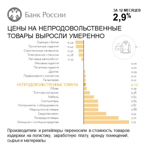 Начальник экономического отдела Отделения Чита Банка России Анатолий Михайлов рассказал, что в сегменте непродовольственных товаров подешевели одежда, трикотажные изделия, бытовая техника, стройматериалы и автомобили. Спрос на них снизился, а также укрепился рубль. Хотя цены в годовом выражении на одежду, трикотаж и стройматериалы выросли, на бытовую технику и автомобили они снизились.