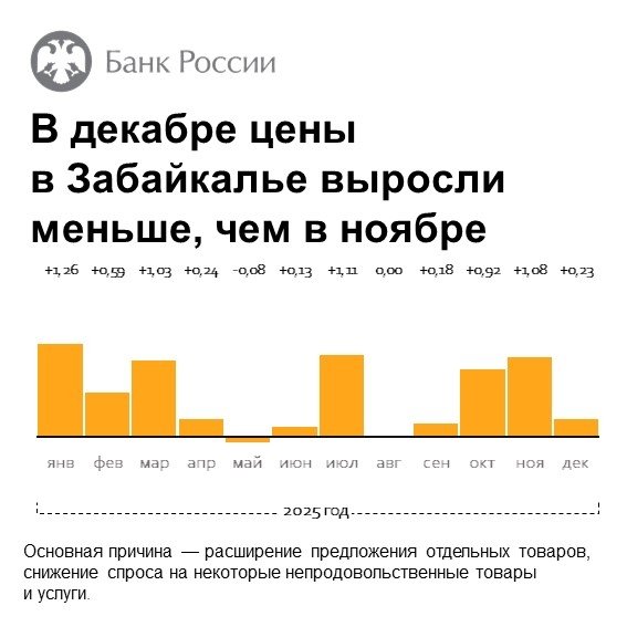При этом в Забайкалье в декабре были дешевле яйца и сахар. Этому способствовали большие запасы на складах и увеличение производства яиц на местной птицефабрике. За год яйца подешевели на 9,7%, сахар — на 0,6%.