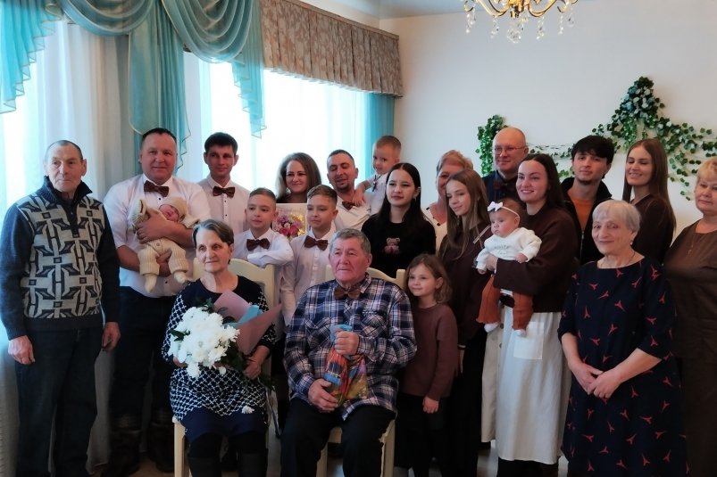 У юбиляров двое детей — сын Игорь и дочь Наташа. Сегодня в их семье четыре внучки, три правнука и четыре правнучки.