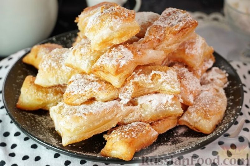 - Слоёное тесто любое (у нас дрожжевое) — 500 г