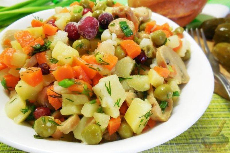 Этот овощной салат с грибами получил своё название благодаря клюкве в составе. "Таёжный" получается ярким, он непременно порадует ваш глаз. Что касается вкуса, в салате абсолютный баланс между отварными овощами, сочным консервированным горошком, кисленькой клюквой и маринованными грибами. Попробуйте приготовить. Рецепт публикует ИА ChitaMedia.