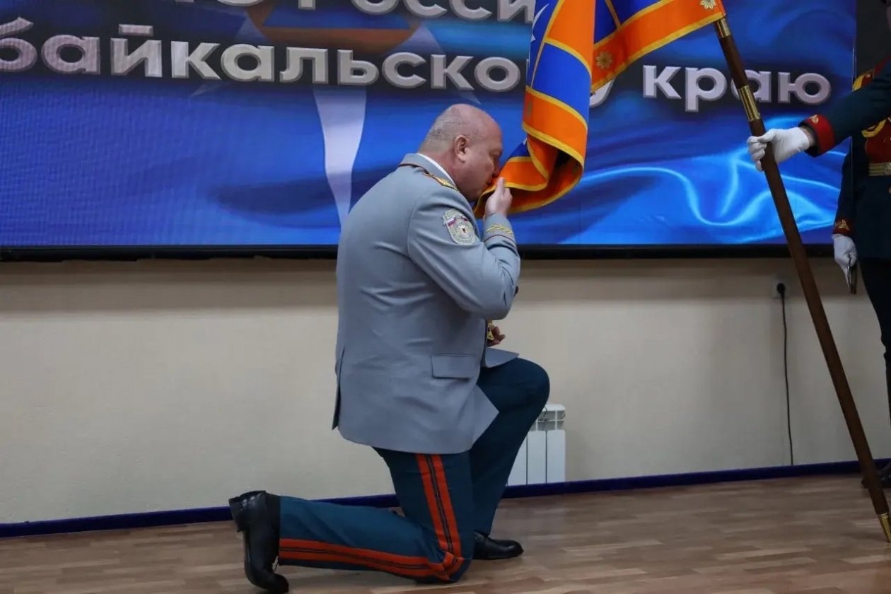 В ходе торжественного собрания Николай Басов принял участие в церемонии прощания со знаменем Главного управления. Преклонив колено, он поцеловал полотнище — символ чести и доблести, с которым прошел боевой путь на забайкальской земле.