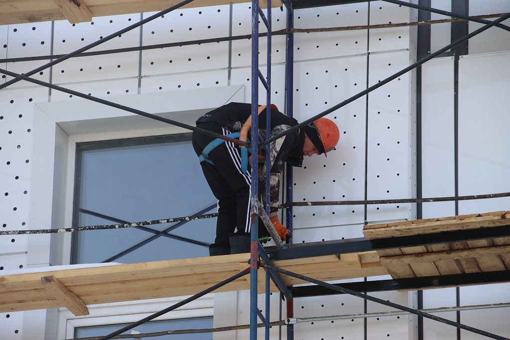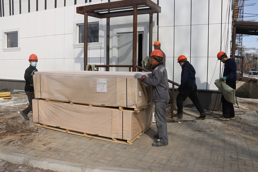 На текущий момент общая готовность объекта оценивается в 75%. Строители уже завершают фасадные работы. Затем они приступят к финальному этапу внутренней отделки.