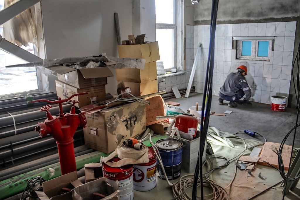 По словам Сергея Кравчука, подрядчик обещал в ближайшее время завершить работы по фасаду. Сейчас самое главное — это внутренняя отделка помещений. Сдать объект необходимо до 20 мая. Работы ведутся, и в конце марта комиссия приедет еще раз, чтобы лично проверить, как идет процесс.