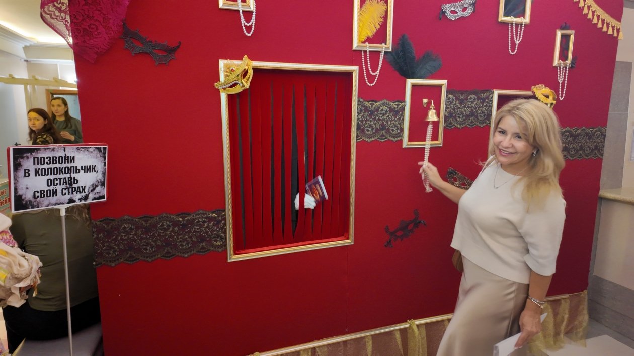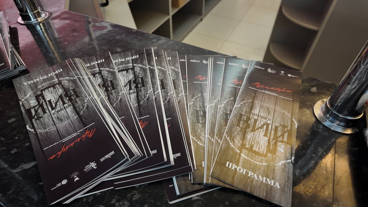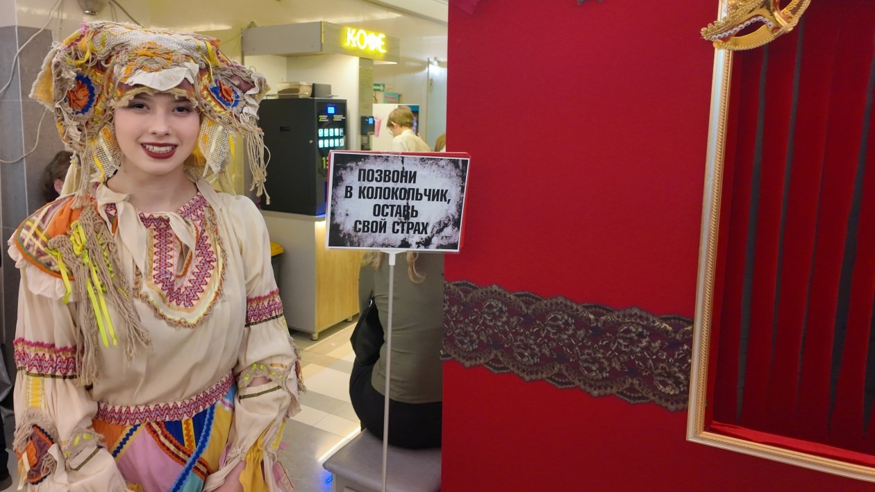 Прежде чем перейти непосредственно к постановке, стоит пару слов сказать о действе в фойе. Гостей ждали несколько интерактивных площадок, посвящённых произведению. В одной из них пани предлагала позвонить в колокольчик и избавиться от страха. Сделавшим это руки из "стены" протягивали "послание" и стаканчик со "святой водой". Отличная отсылка и к советской картине (в виде рук из стены), и к итогу самого произведения, где Хома умирает от страха.