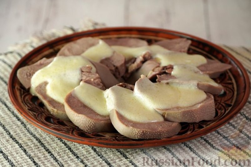 Рецепт варёного языка под белым польским соусом. Подаётся блюдо как тёплая закуска. Рецепт публикует ИА ChitaMedia.