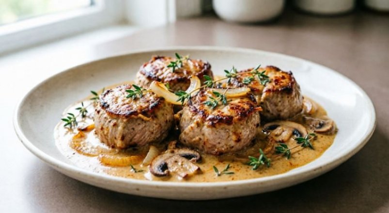Нежные медальоны из свиной вырезки, обжаренные до румяности, становятся более вкусными и сочными благодаря тушению в сливочном соусе с шампиньонами, луком, паприкой и дижонской горчицей. Рецепт публикует ИА ChitaMedia.