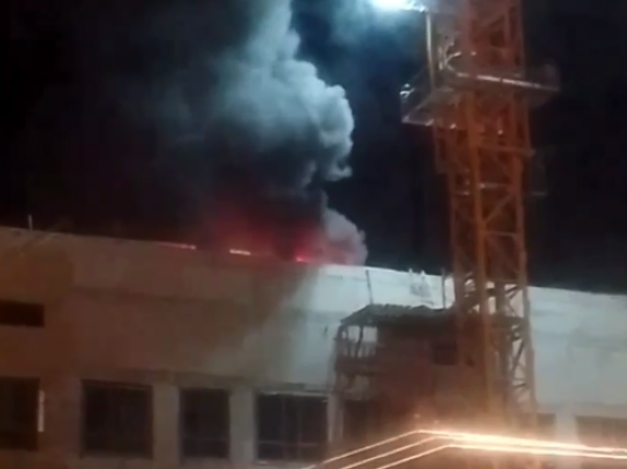Жители соседнего дома сообщили, что сначала слышали хлопки и видели искры. На месте работают три пожарные машины, скорая помощь и полиция.