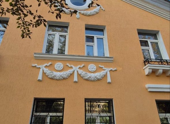 "Решили двигаться вперед и улучшить исторический вид здания, поскольку техника оштукатуривания "короед" менее подвержена воздействию неблагоприятных внешних факторов. Для реставрации лепнины подрядчик дополнительно закупил дорогостоящие материалы, изготовил слепки, повторил утраченные элементы растительного венка и розетку, символизирующей солнце", — сказал руководитель ведомства Алексей Писаренко.