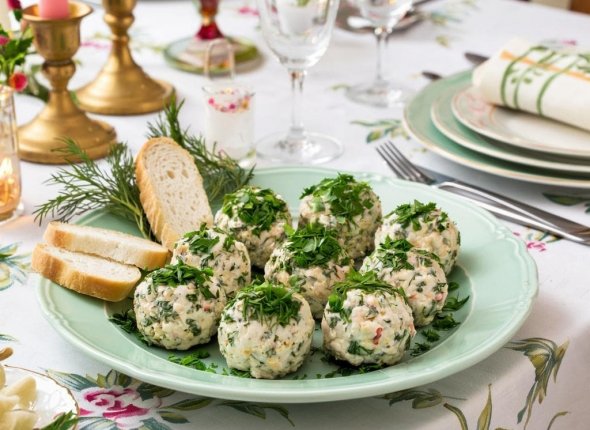 - Выложите шарики на блюдо и украсьте свежей зеленью (по желанию);