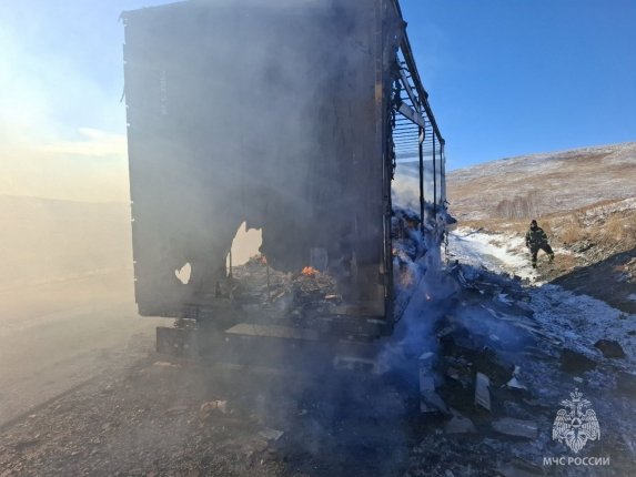 ChitaMedia, 13 ноября. Фура с грузом загорелась на трассе Чита-Забайкальск 12 ноября. Содержимое большегруза уничтожено. Об этом сообщается в телеграм-канале (18+) ГУ МЧС по Забайкалью.