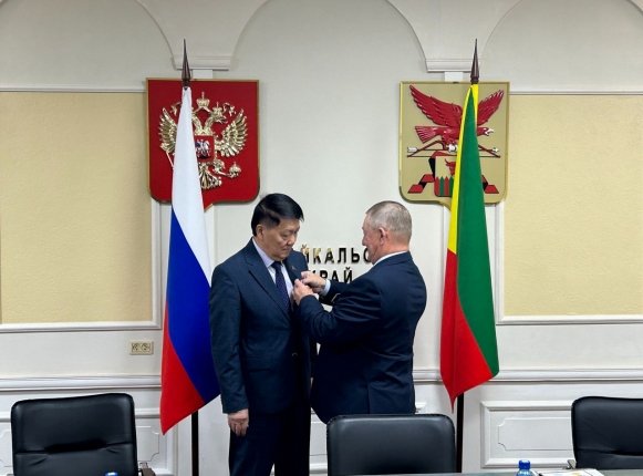 ChitaMedia, 17 ноября. Глава Законодательного Собрания Забайкальского края Кон Ен Хва получил медаль "За взаимодействие" I степени. Награду ему вручил начальник управления Судебного департамента в Забайкальском крае Анатолий Екимов. Об этом сообщили в телеграм-канале (18+) "Депутат Забайкалья"