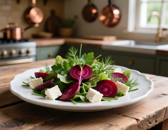 Готовится из простых продуктов, но смотрится как блюдо от шефа. Главное подавать его чуть теплым, чтобы сыр слегка расплавился, а аромат свёклы раскрылся полностью.