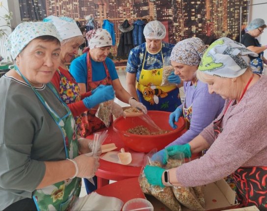С начала работы фронтовой кухни выпущено 126 тысяч порций сухих супов и 11 тысяч реторт-пакетов. В помощи участвуют женщины, девушки и дети — они фасуют, сушат и готовят продукты. Жители района привозят ингредиенты, благодаря чему производство не останавливается ни на один день.