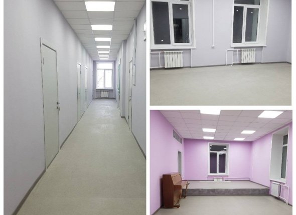 В школе заменили окна, двери и полы, провели звукоизоляцию в кабинетах. В кабинете для занятий музыкой или рисованием демонтировали старые деревянные перегородки и расширили пространство.