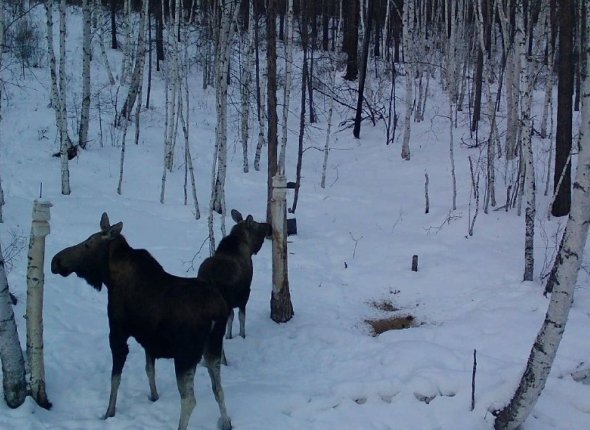 ChitaMedia, 8 декабря. Двое лосей попали в объектив фотоловушки в Забайкалье. В тг-канале (18+) Минприроды Забайкалья отметили, что сейчас для копытных наступает суровая пора — корма не будет хватать, а глубокий снег будет мешать передвигаться.