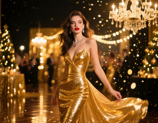 Чтобы образ выглядел по-настоящему празднично, стилисты рекомендуют выбирать ткани, которые красиво смотрятся при вечернем освещении. Шёлк, атлас и сатин подходят для струящихся платьев и блузок. Бархат делает образ более выразительным и глубоким, а шифон добавляет лёгкости и воздушности.