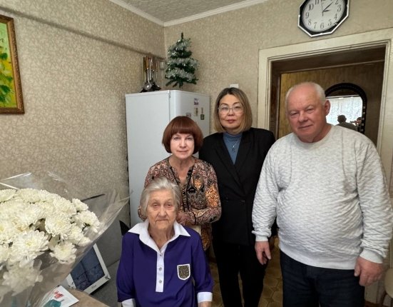 В день юбилея именинница встретила гостей из администрации Черновского района нарядной и в хорошем настроении. Представила детей, рассказала о четырёх внуках и правнуке.