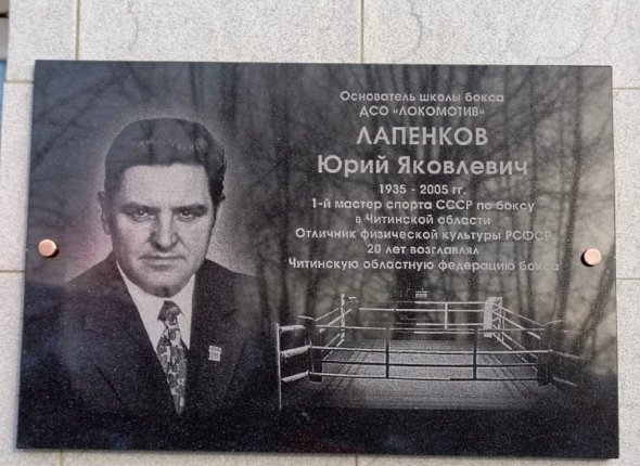 "Сегодня в спортивном комплексе "Локомотив" прошло торжественное открытие памятной доски первому мастеру спорта СССР в Читинской области, отличнику физической культуры РСФСР. Тренеру, который воспитал более 12 мастеров спорта Юрию Яковлевичу Лапенкову", — говорится в публикации.