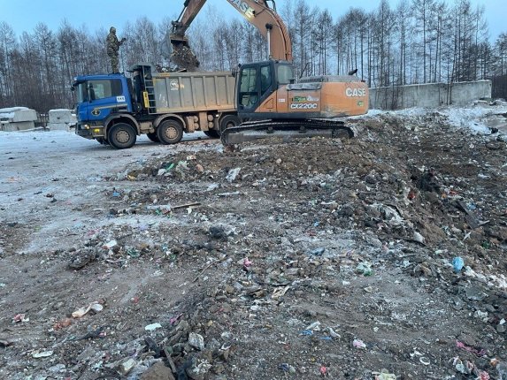 Сейчас власти посёлка заключил контракт с подрядной организацией, которая занимается вывозом мусора. Основная часть мусора уже увезена на полигон в Могочу. Для работ используют грузовики и бульдозер.