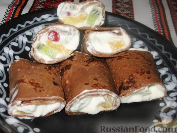 ChitaMedia, 17 февраля. Замечательный десерт, каждый ингредиент которого вкусен сам по себе: шоколадные блины, сливки, взбитые с сахаром, и фрукты, выбранные по сезону. Рецепт публикует ИА ChitaMedia.