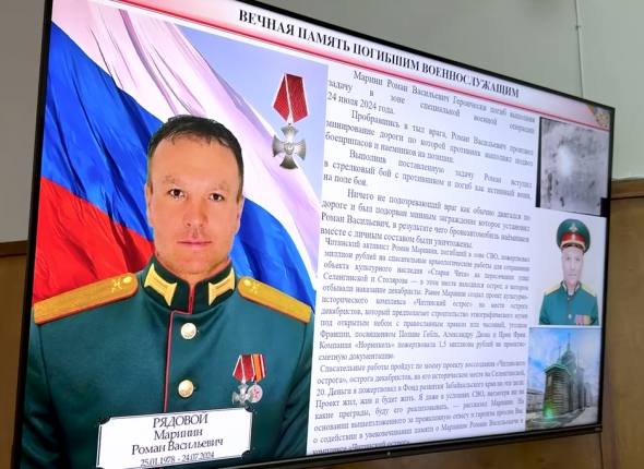 ChitaMedia, 21 февраля. В телеграм-канале (18+) губернатора Забайкалья Александра Осипова сообщили, что военнослужащие батальона "Даурский" обратились с просьбой увековечить память земляка Романа Маринина, погибшего при исполнении воинского долга в ходе СВО. Мужчина пожертвовал деньги на восстановление Читинского острога.