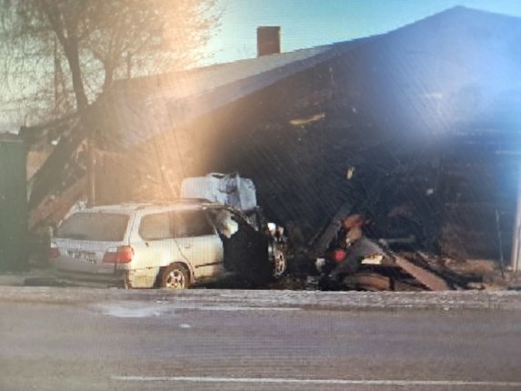 По предварительным данным, водитель Nissan Primera не справился с управлением, съехал с дороги и влетел в гараж.