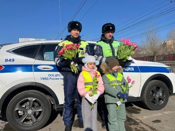 ChitaMedia, 9 марта. Акция "Цветы для автоледи" (0+) прошла в Забайкалье в преддверии Международного женского дня. Об этом сообщили в тг-канале (18+) правительства Забайкалья.