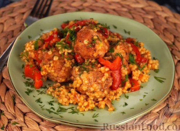 Макаронные изделия птитим, похожие на кускус, готовятся в духовке в компании яркого перца и аппетитных фрикаделек из куриного фарша. Птитим напитывается всеми соками и ароматами, блюдо получается очень вкусным. Рецепт публикует ИА ChitaMedia.