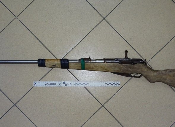 В ходе обследования его жилища полицейские обнаружили предмет, конструктивно похожий на огнестрельное оружие. Экспертиза подтвердила, что это сборная винтовка системы Мосина — нарезное огнестрельное оружие, пригодное для стрельбы.