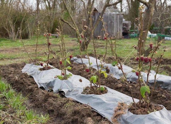 Проводите в марте после схода снега, когда земля чуть оттаяла. Окученная малина зимует без подмерзания, но "шуба" из земли мешает дыханию корней весной — откапывание запускает сокодвижение, предотвращает гниль.