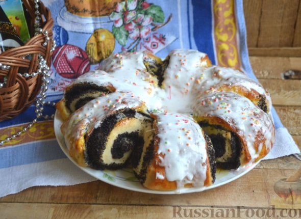 Пасхальный пирог будем готовить из очень вкусного дрожжевого теста, с начинкой из мака. А чтобы пирог был не только вкусным, но и красивым, — сделаем его в форме цветка и украсим глазурью. Рецепт публикует ИА ChitaMedia.