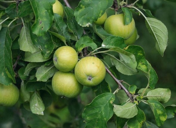 Влажная весна провоцирует заражение: листья скручиваются, покрываются оливковыми пятнами, плоды трескаются. Яблони и груши страдают больше всего — урожай падает на 50–70%. Осматривайте почки в марте.