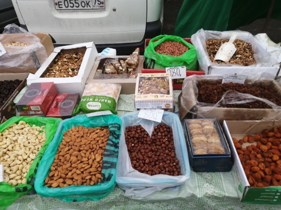 На ярмарке можно будет приобрести орехи, мёд, ягоды, фрукты, сухофрукты, колбасу, сало, а также свежую, солёную и копчёную рыбу.